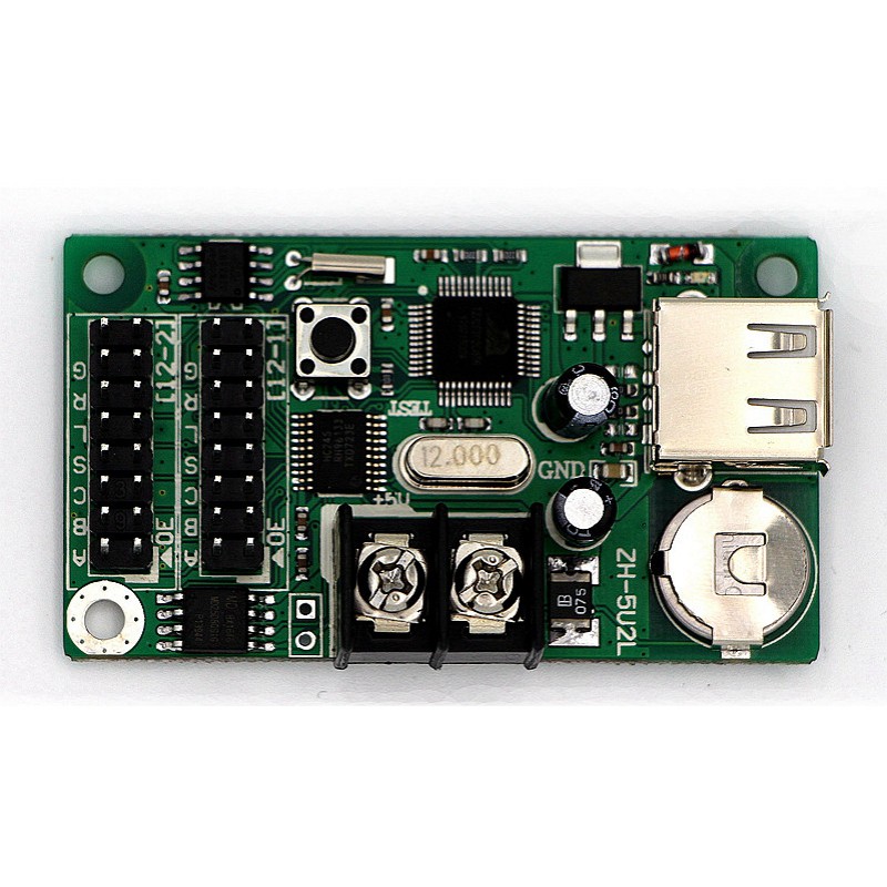 The ZH5U2L is a reliable single-color LED controller card designed for seamless LED display management. Featuring an ARM7 processor and 8M bit storage, it supports resolutions up to 16×640 or 32×320 pixels. The card provides RS485 communication, multiple display effects, random partitioning, time switches, digital and analog clocks, and 16-level brightness adjustment. Ideal for advertising boards, signage displays, and information screens, the ZH5U2L ensures stable performance and precise control of single-color LED modules.